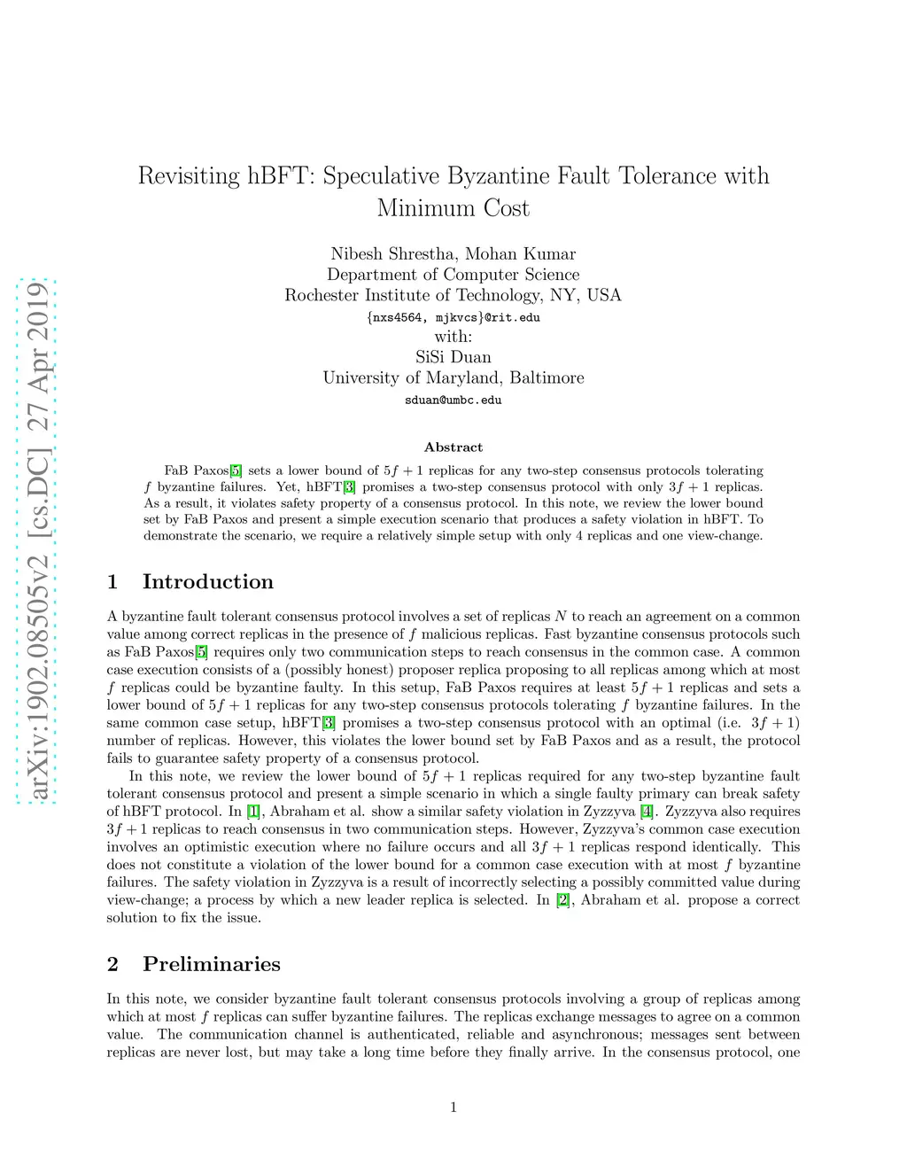 Revisiting hBFT: Speculative Byzantine Fault Tolerance with Minimum Cost