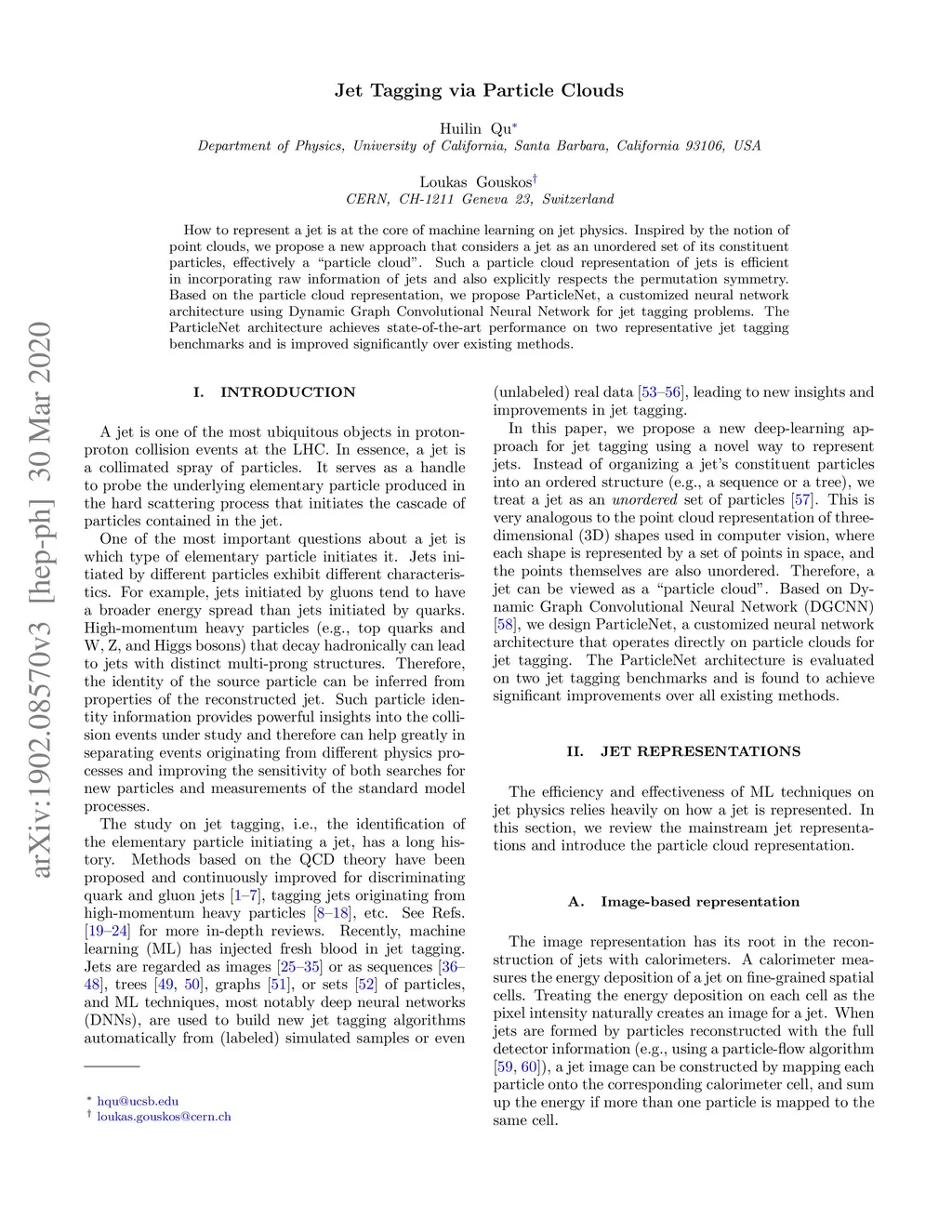 How to represent a jet is at the core of machine learning on jet physics. Inspired by the notion of point clouds, we propose a new approach that considers a jet as an unordered set of its constituent particles, effectively a "particle cloud". Such a particle cloud representation of jets is efficient in incorporating raw information of jets and also explicitly respects the permutation symmetry. Based on the particle cloud representation, we propose ParticleNet, a customized neural network architecture using Dynamic Graph Convolutional Neural Network for jet tagging problems. The ParticleNet architecture achieves state-of-the-art performance on two representative jet tagging benchmarks and is improved significantly over existing methods.