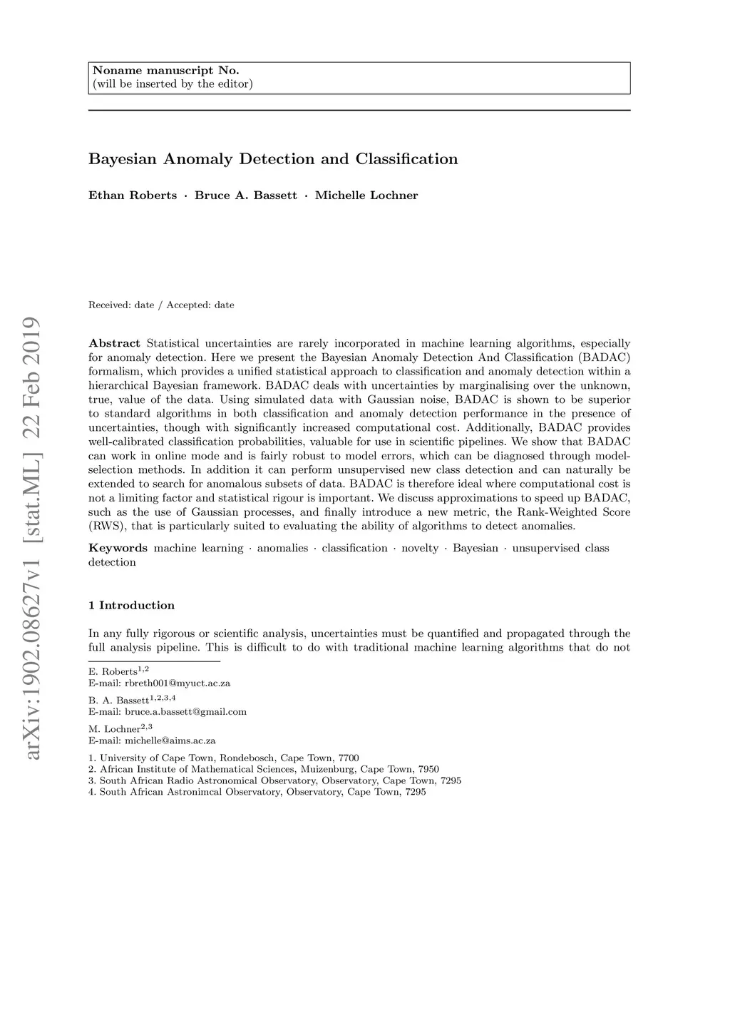 Bayesian Anomaly Detection and Classification