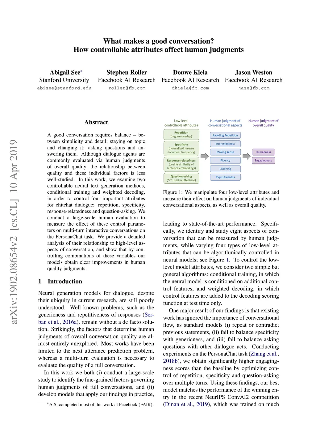 What makes a good conversation? How controllable attributes affect human