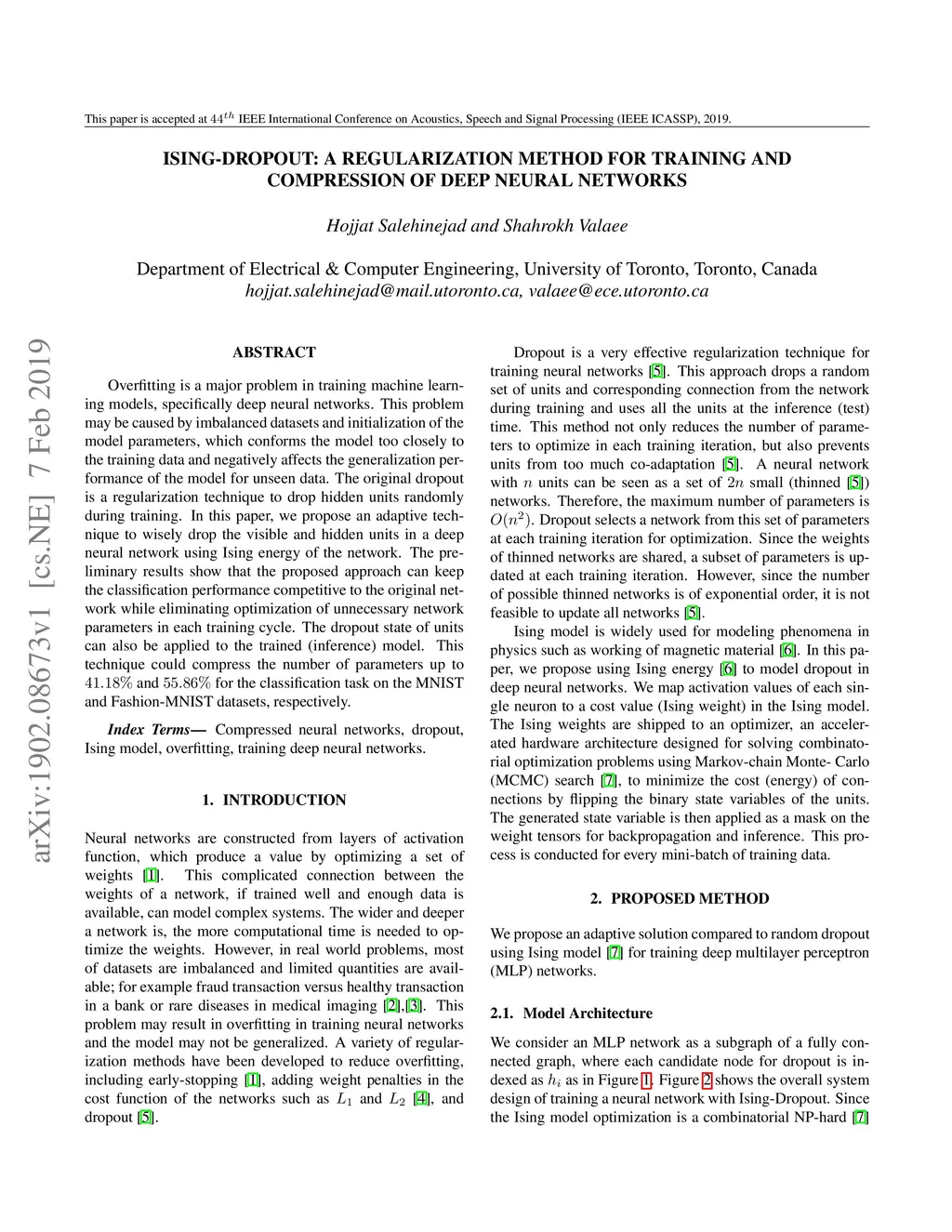 Ising-Dropout: A Regularization Method for Training and Compression of