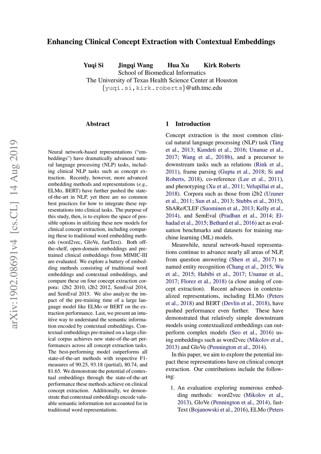 Enhancing Clinical Concept Extraction with Contextual Embeddings