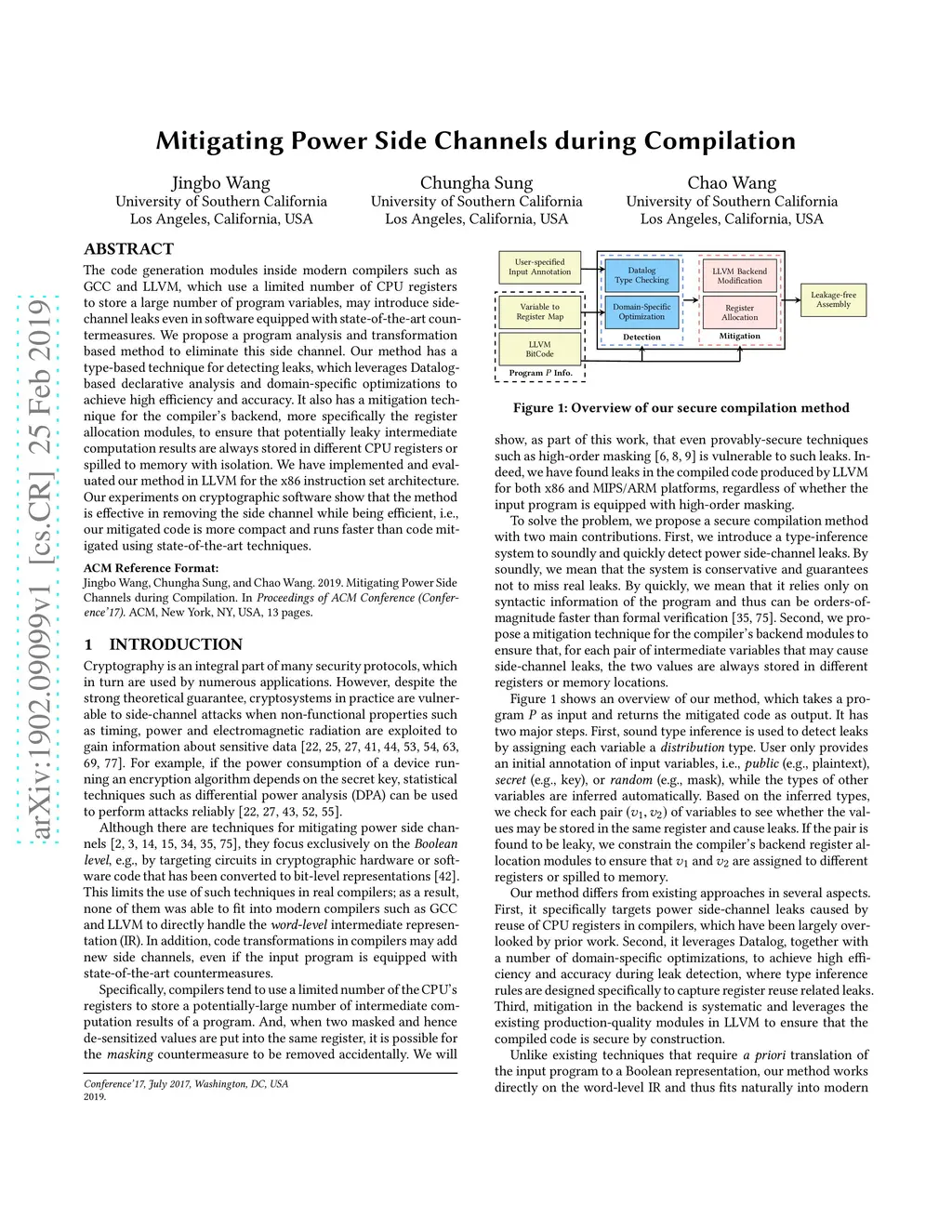 The code generation modules inside modern compilers such as GCC and LLVM, which use a limited number of CPU registers to store a large number of program variables, may introduce side-channel leaks even in software equipped with state-of-the-art countermeasures. We propose a program analysis and transformation based method to eliminate this side channel. Our method has a type-based technique for detecting leaks, which leverages Datalog-based declarative analysis and domain-specific optimizations to achieve high efficiency and accuracy. It also has a mitigation technique for the compiler's backend, more specifically the register allocation modules, to ensure that potentially leaky intermediate computation results are always stored in different CPU registers or spilled to memory with isolation. We have implemented and evaluated our method in LLVM for the x86 instruction set architecture. Our experiments on cryptographic software show that the method is effective in removing the side channel while being efficient, i.e., our mitigated code is more compact and runs faster than code mitigated using state-of-the-art techniques.