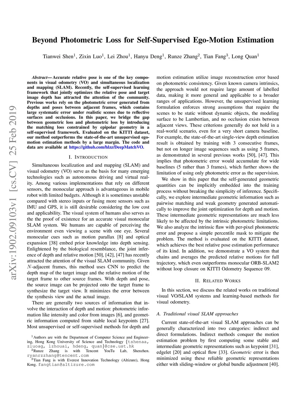 Beyond Photometric Loss for Self-Supervised Ego-Motion Estimation