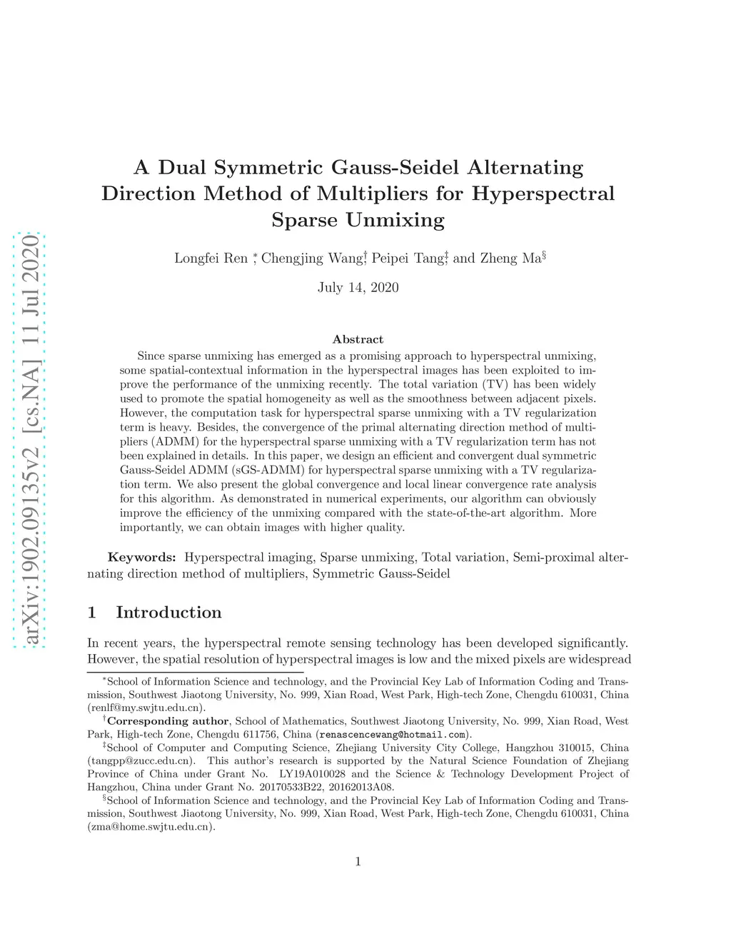 Since sparse unmixing has emerged as a promising approach to hyperspectral unmixing, some spatial-contextual information in the hyperspectral images has been exploited to improve the performance of the unmixing recently. The total variation (TV) has been widely used to promote the spatial homogeneity as well as the smoothness between adjacent pixels. However, the computation task for hyperspectral sparse unmixing with a TV regularization term is heavy. Besides, the convergence of the primal alternating direction method of multipliers (ADMM) for the hyperspectral sparse unmixing with a TV regularization term has not been explained in details. In this paper, we design an efficient and convergent dual symmetric Gauss-Seidel ADMM (sGS-ADMM) for hyperspectral sparse unmixing with a TV regularization term. We also present the global convergence and local linear convergence rate analysis for this algorithm. As demonstrated in numerical experiments, our algorithm can obviously improve the efficiency of the unmixing compared with the state-of-the-art algorithm. More importantly, we can obtain images with higher quality.