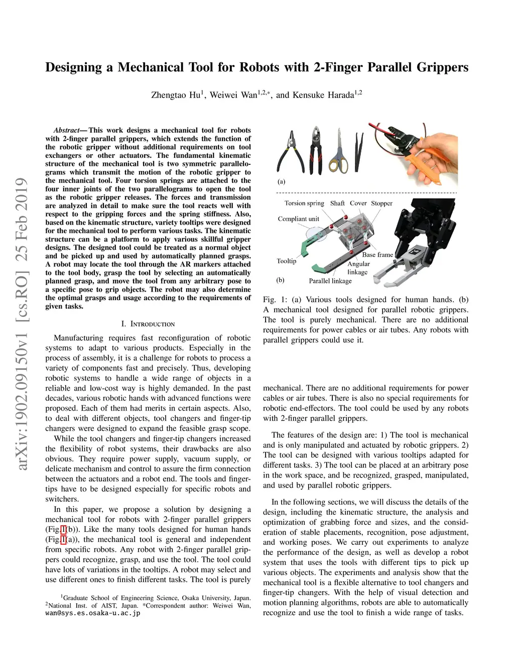 Designing a Mechanical Tool for Robots with 2-Finger Parallel Grippers