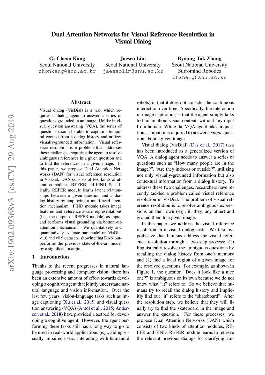 Dual Attention Networks for Visual Reference Resolution in Visual Dialog