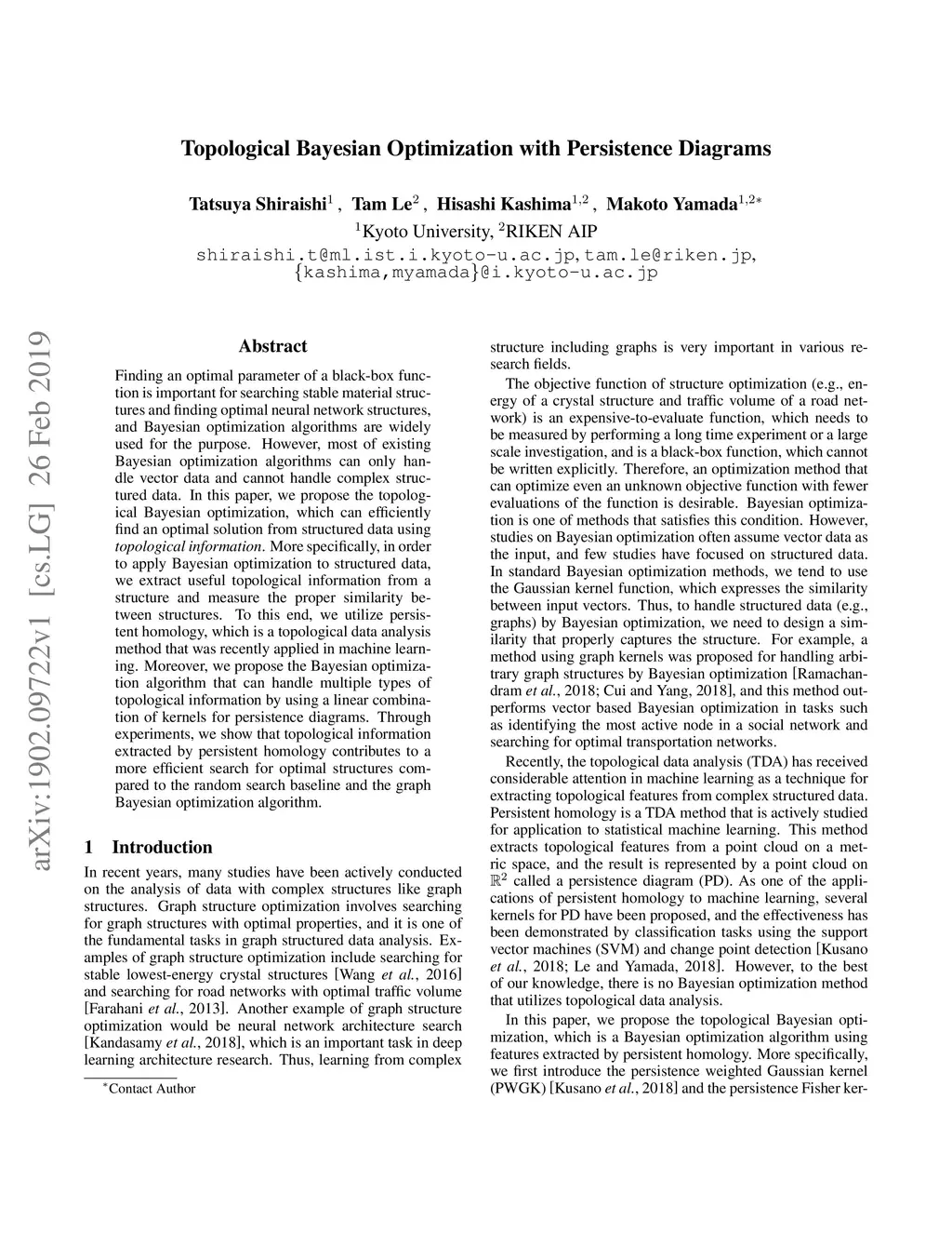 Topological Bayesian Optimization with Persistence Diagrams