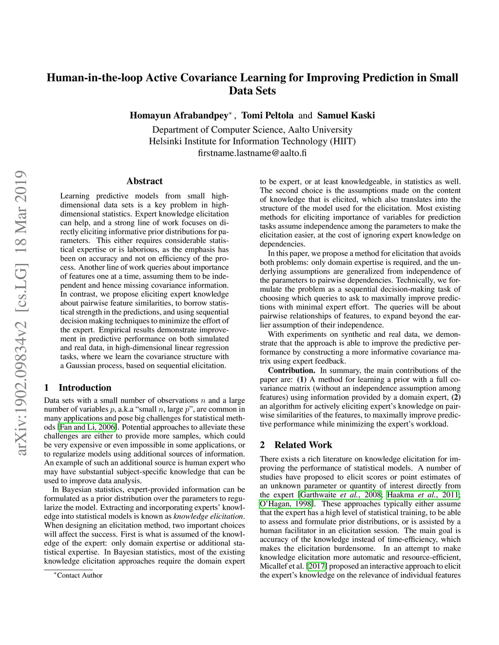 Human-in-the-loop Active Covariance Learning for Improving Prediction in