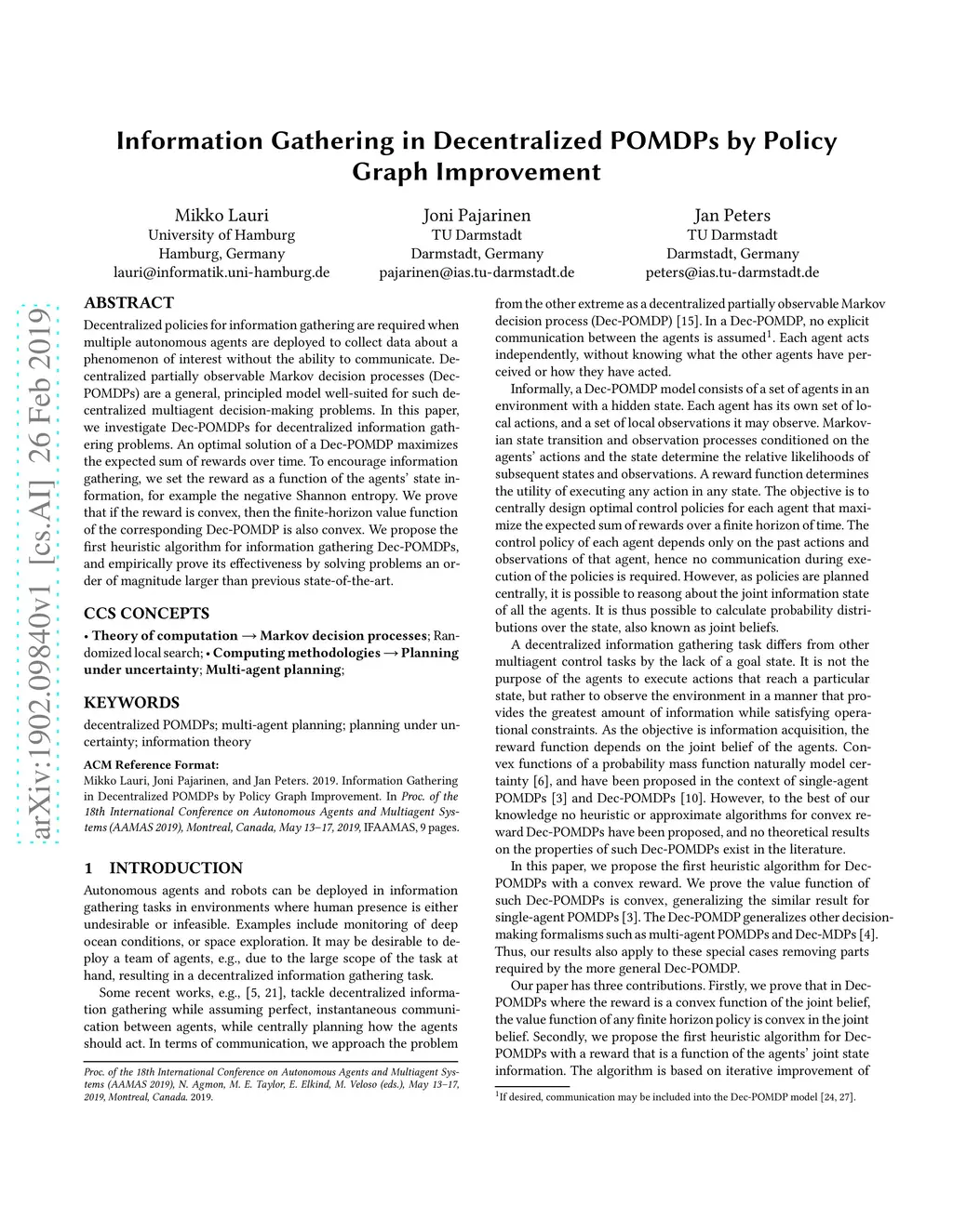 Information Gathering in Decentralized POMDPs by Policy Graph