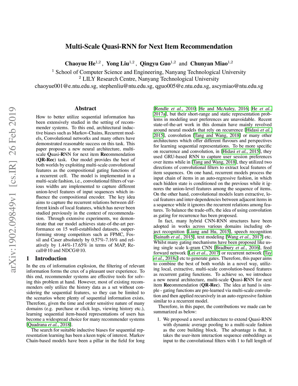 Multi-Scale Quasi-RNN for Next Item Recommendation