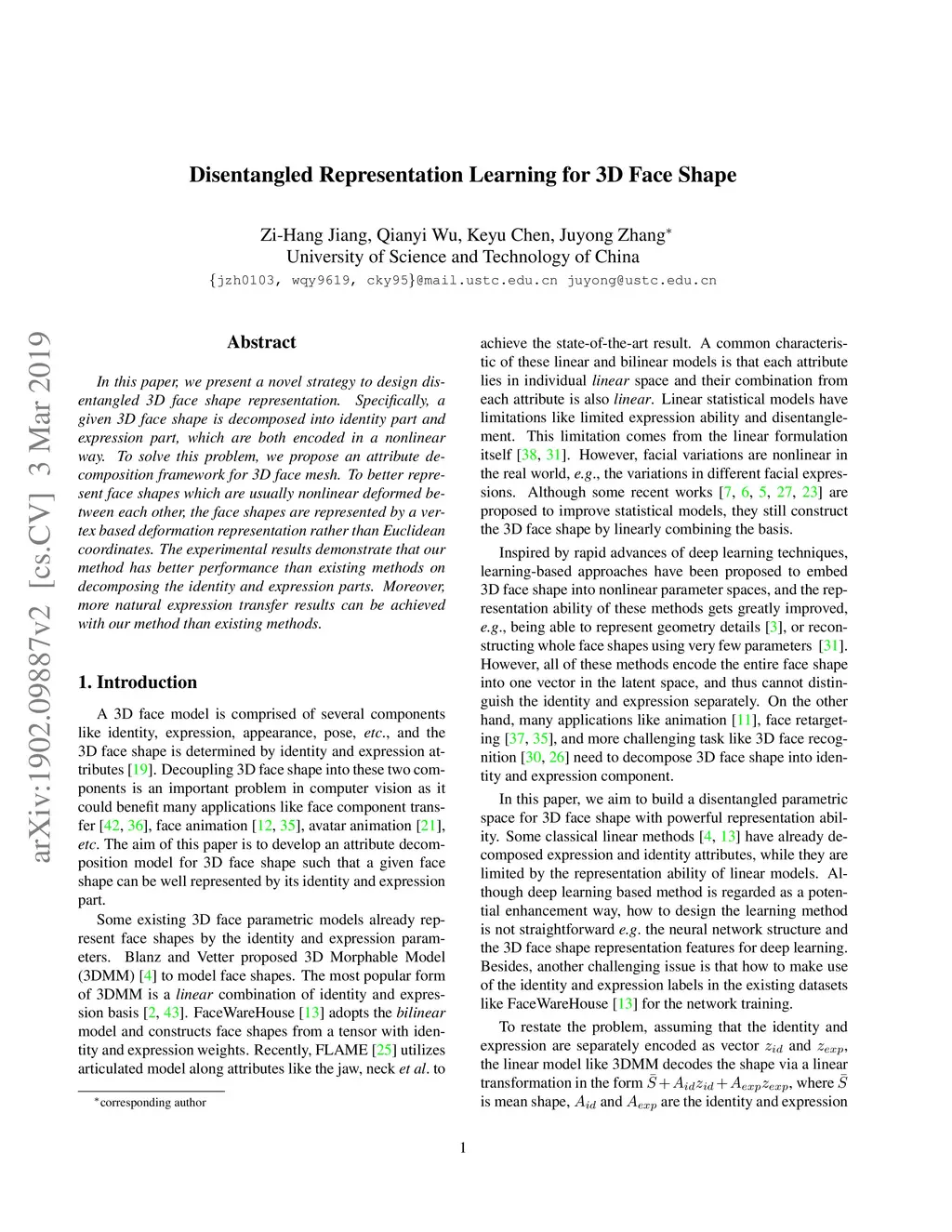 In this paper, we present a novel strategy to design disentangled 3D face shape representation. Specifically, a given 3D face shape is decomposed into identity part and expression part, which are both encoded and decoded in a nonlinear way. To solve this problem, we propose an attribute decomposition framework for 3D face mesh. To better represent face shapes which are usually nonlinear deformed between each other, the face shapes are represented by a vertex based deformation representation rather than Euclidean coordinates. The experimental results demonstrate that our method has better performance than existing methods on decomposing the identity and expression parts. Moreover, more natural expression transfer results can be achieved with our method than existing methods.