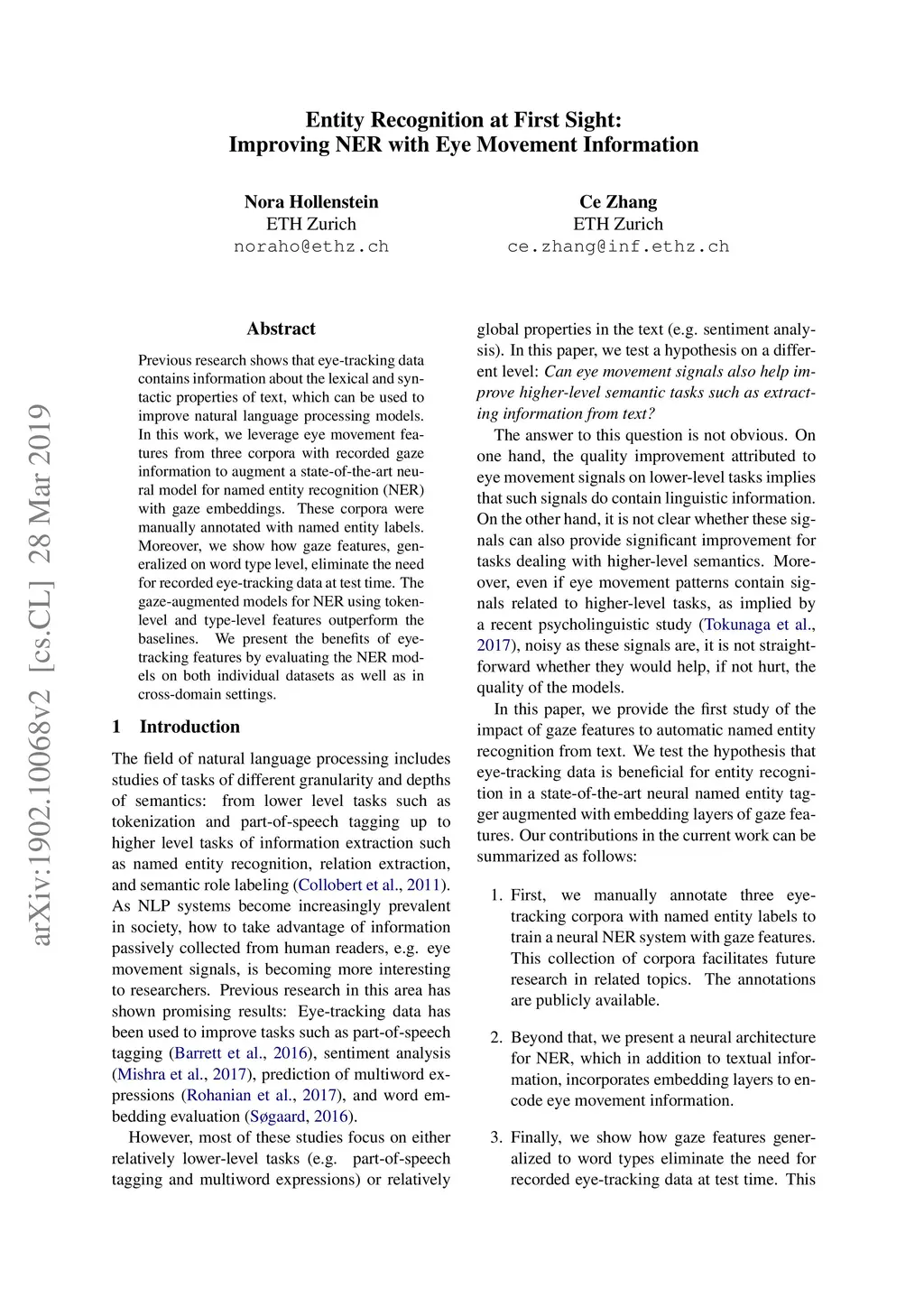 Entity Recognition at First Sight: Improving NER with Eye Movement