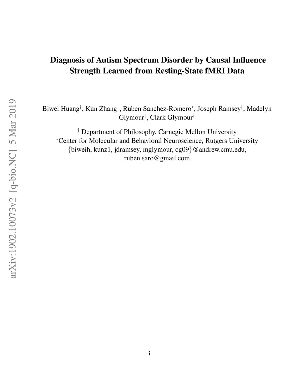 Diagnosis of Autism Spectrum Disorder by Causal Influence Strength