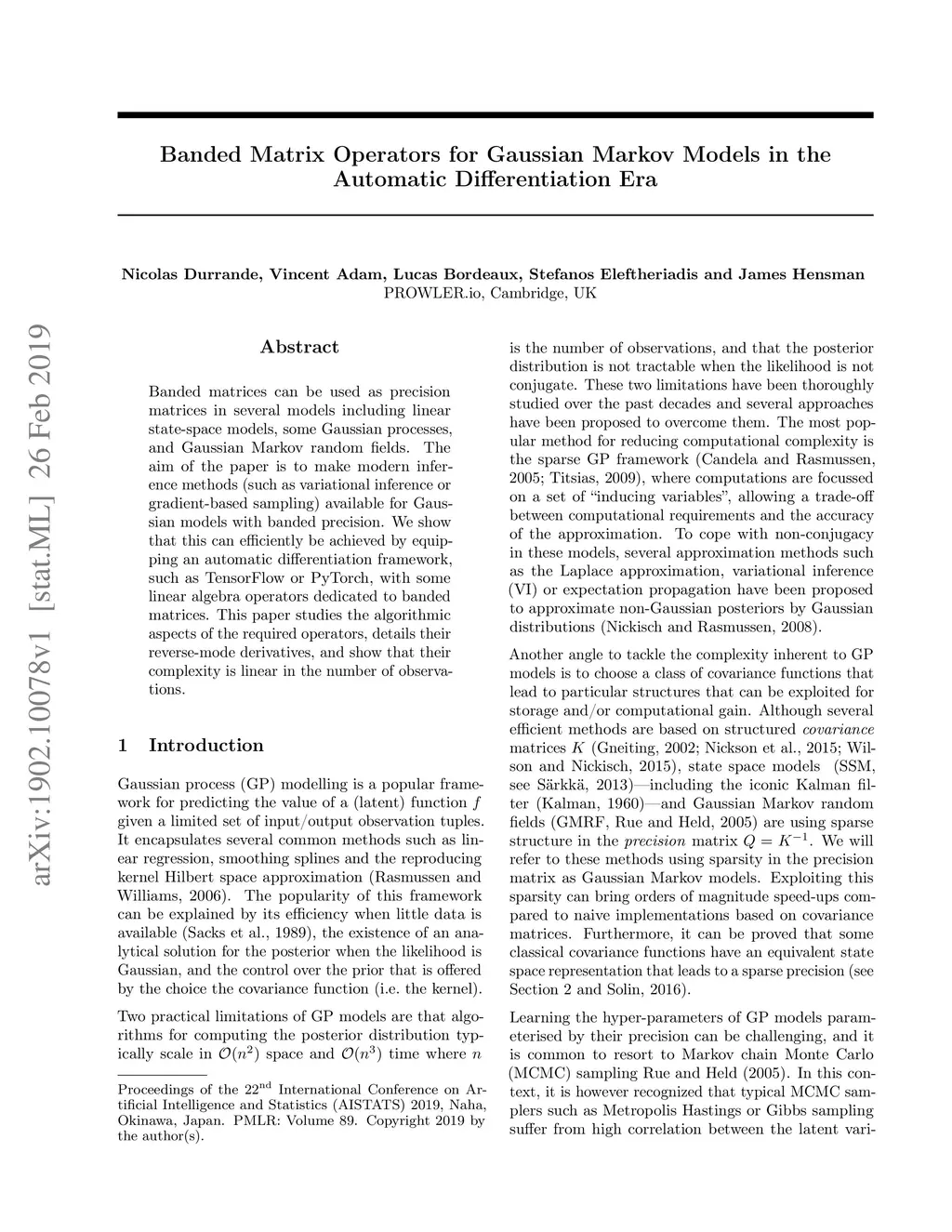 Banded Matrix Operators for Gaussian Markov Models in the Automatic