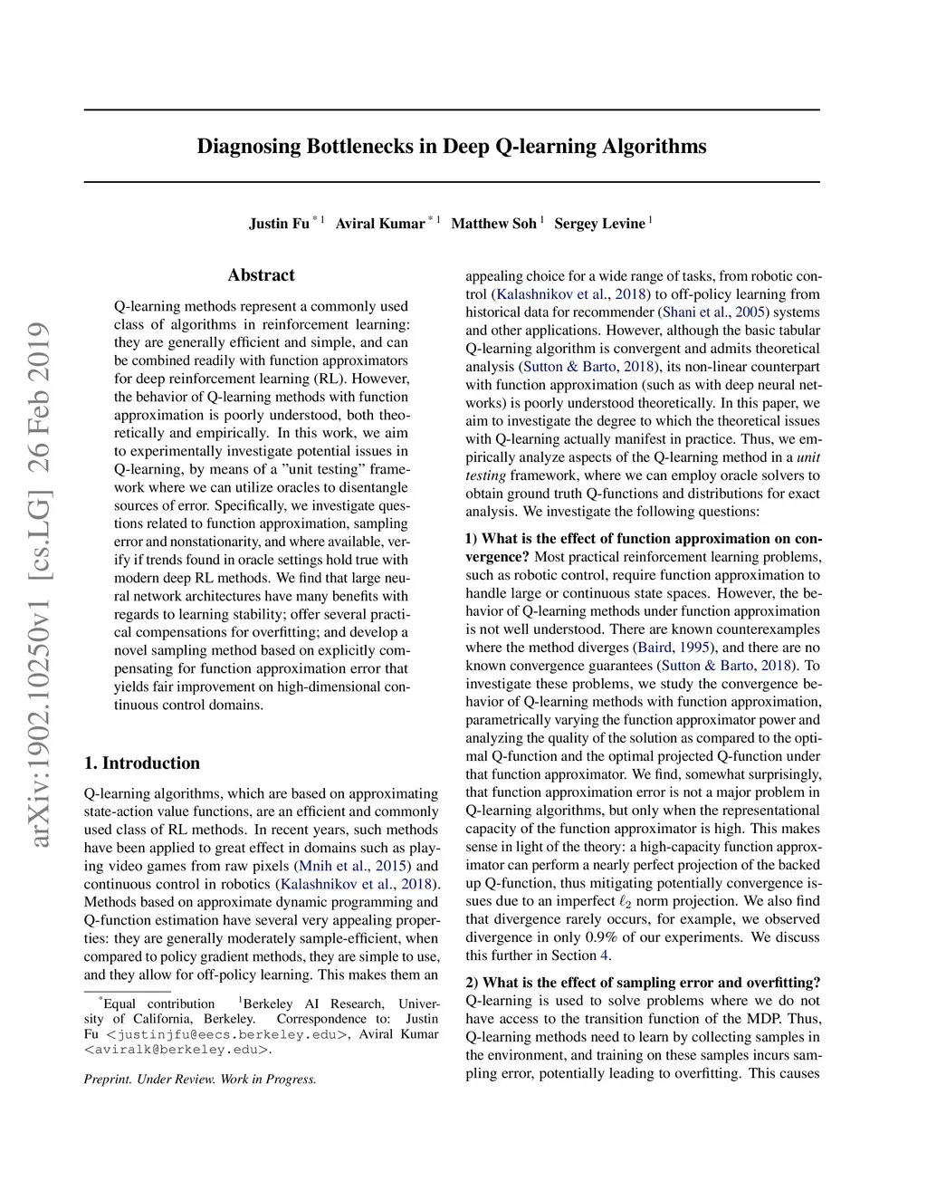 Diagnosing Bottlenecks in Deep Q-learning Algorithms