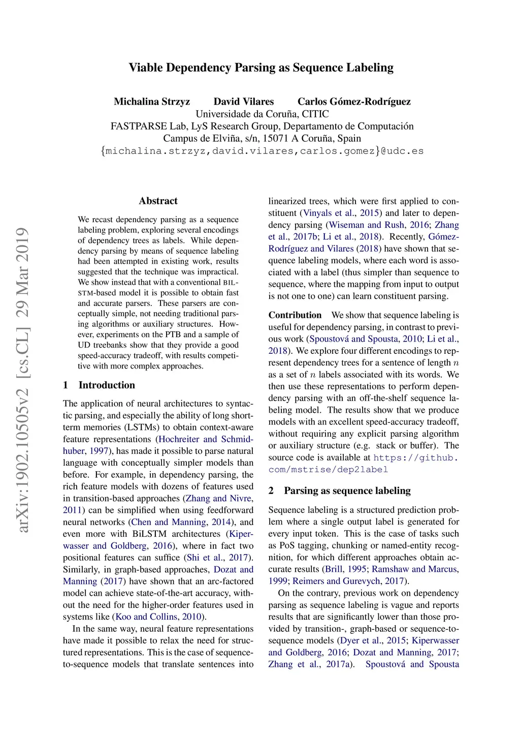 Viable Dependency Parsing as Sequence Labeling