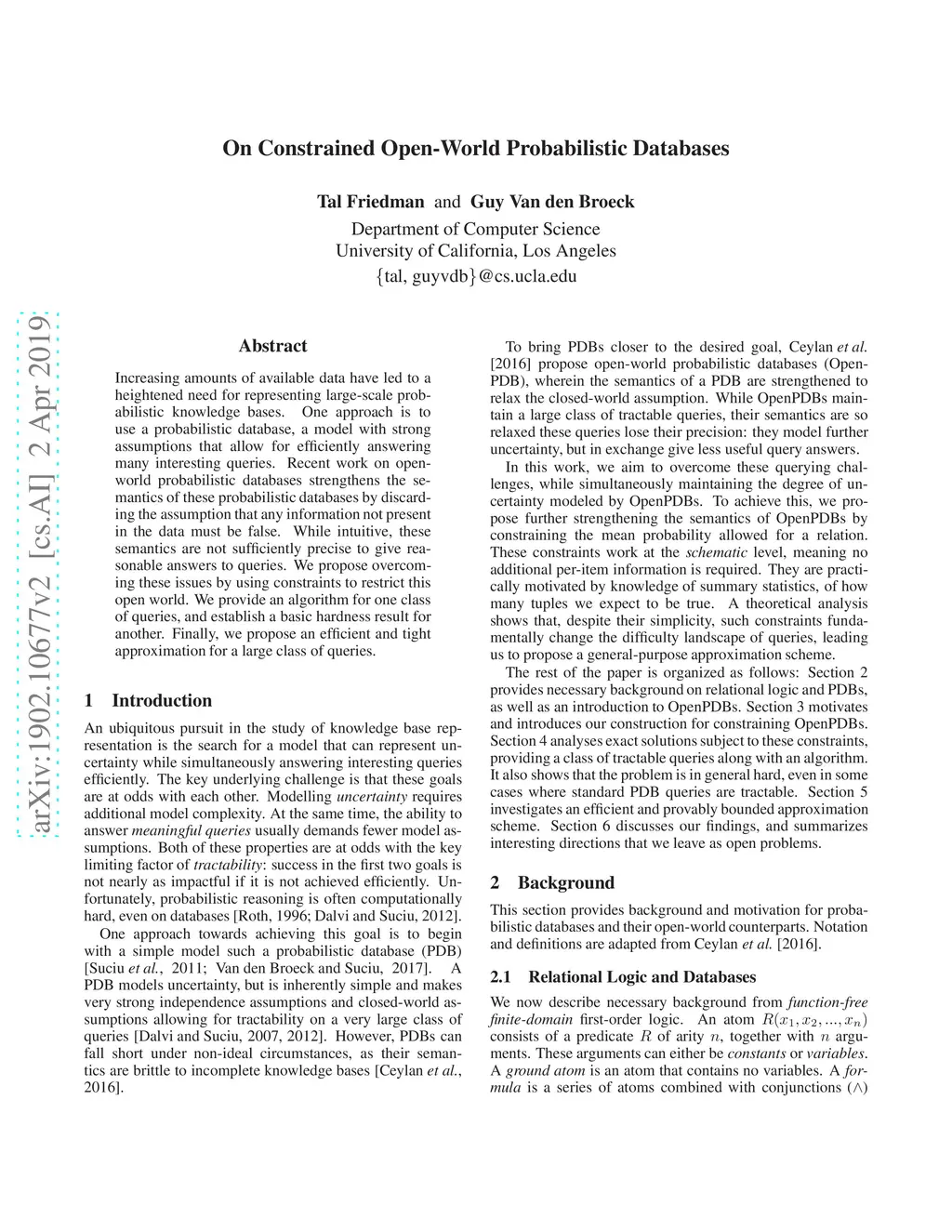 Increasing amounts of available data have led to a heightened need for representing large-scale probabilistic knowledge bases. One approach is to use a probabilistic database, a model with strong assumptions that allow for efficiently answering many interesting queries. Recent work on open-world probabilistic databases strengthens the semantics of these probabilistic databases by discarding the assumption that any information not present in the data must be false. While intuitive, these semantics are not sufficiently precise to give reasonable answers to queries. We propose overcoming these issues by using constraints to restrict this open world. We provide an algorithm for one class of queries, and establish a basic hardness result for another. Finally, we propose an efficient and tight approximation for a large class of queries.