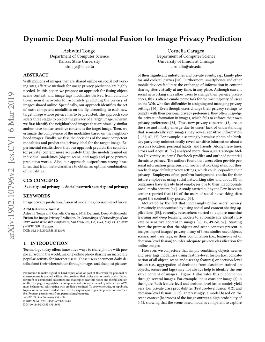 Dynamic Deep Multi-modal Fusion for Image Privacy Prediction