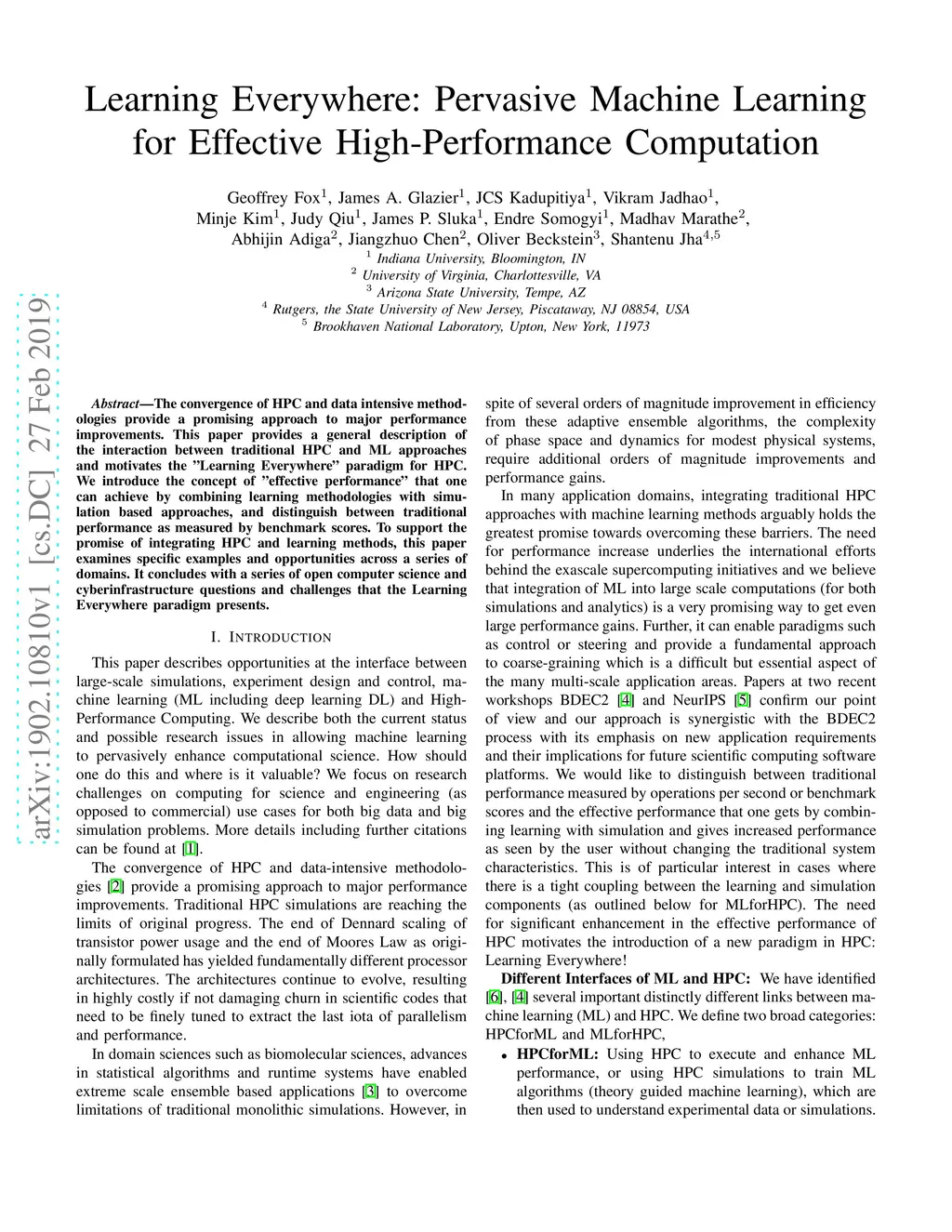 The convergence of HPC and data-intensive methodologies provide a promising approach to major performance improvements. This paper provides a general description of the interaction between traditional HPC and ML approaches and motivates the Learning Everywhere paradigm for HPC. We introduce the concept of effective performance that one can achieve by combining learning methodologies with simulation-based approaches, and distinguish between traditional performance as measured by benchmark scores. To support the promise of integrating HPC and learning methods, this paper examines specific examples and opportunities across a series of domains. It concludes with a series of open computer science and cyberinfrastructure questions and challenges that the Learning Everywhere paradigm presents.