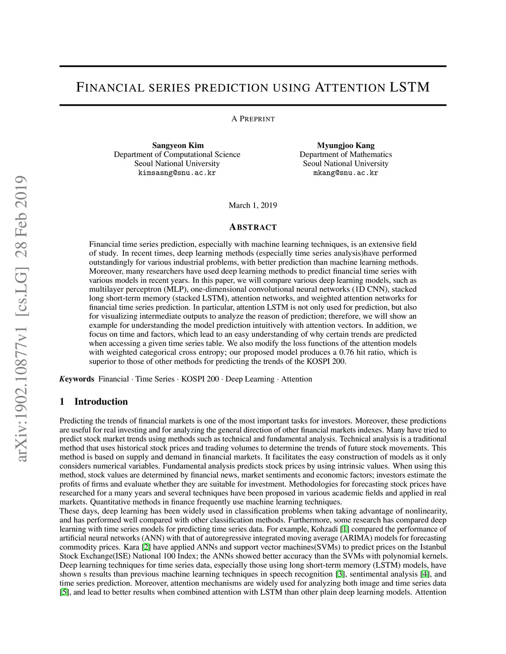 Financial time series prediction, especially with machine learning techniques, is an extensive field of study. In recent times, deep learning methods (especially time series analysis) have performed outstandingly for various industrial problems, with better prediction than machine learning methods. Moreover, many researchers have used deep learning methods to predict financial time series with various models in recent years. In this paper, we will compare various deep learning models, such as multilayer perceptron (MLP), one-dimensional convolutional neural networks (1D CNN), stacked long short-term memory (stacked LSTM), attention networks, and weighted attention networks for financial time series prediction. In particular, attention LSTM is not only used for prediction, but also for visualizing intermediate outputs to analyze the reason of prediction; therefore, we will show an example for understanding the model prediction intuitively with attention vectors. In addition, we focus on time and factors, which lead to an easy understanding of why certain trends are predicted when accessing a given time series table. We also modify the loss functions of the attention models with weighted categorical cross entropy; our proposed model produces a 0.76 hit ratio, which is superior to those of other methods for predicting the trends of the KOSPI 200.