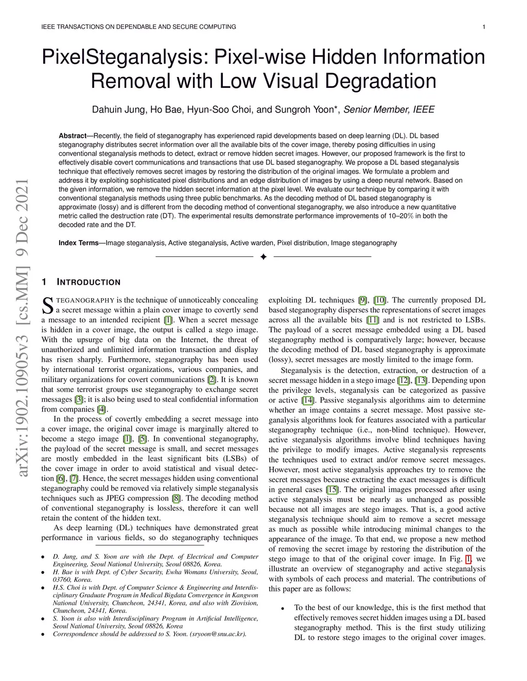 PixelSteganalysis: Pixel-wise Hidden Information Removal with Low Visual
