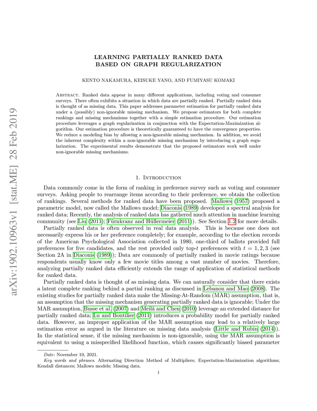 Ranked data appear in many different applications, including voting and consumer surveys. There often exhibits a situation in which data are partially ranked. Partially ranked data is thought of as missing data. This paper addresses parameter estimation for partially ranked data under a (possibly) non-ignorable missing mechanism. We propose estimators for both complete rankings and missing mechanisms together with a simple estimation procedure. Our estimation procedure leverages a graph regularization in conjunction with the Expectation-Maximization algorithm. Our estimation procedure is theoretically guaranteed to have the convergence properties. We reduce a modeling bias by allowing a non-ignorable missing mechanism. In addition, we avoid the inherent complexity within a non-ignorable missing mechanism by introducing a graph regularization. The experimental results demonstrate that the proposed estimators work well under non-ignorable missing mechanisms.