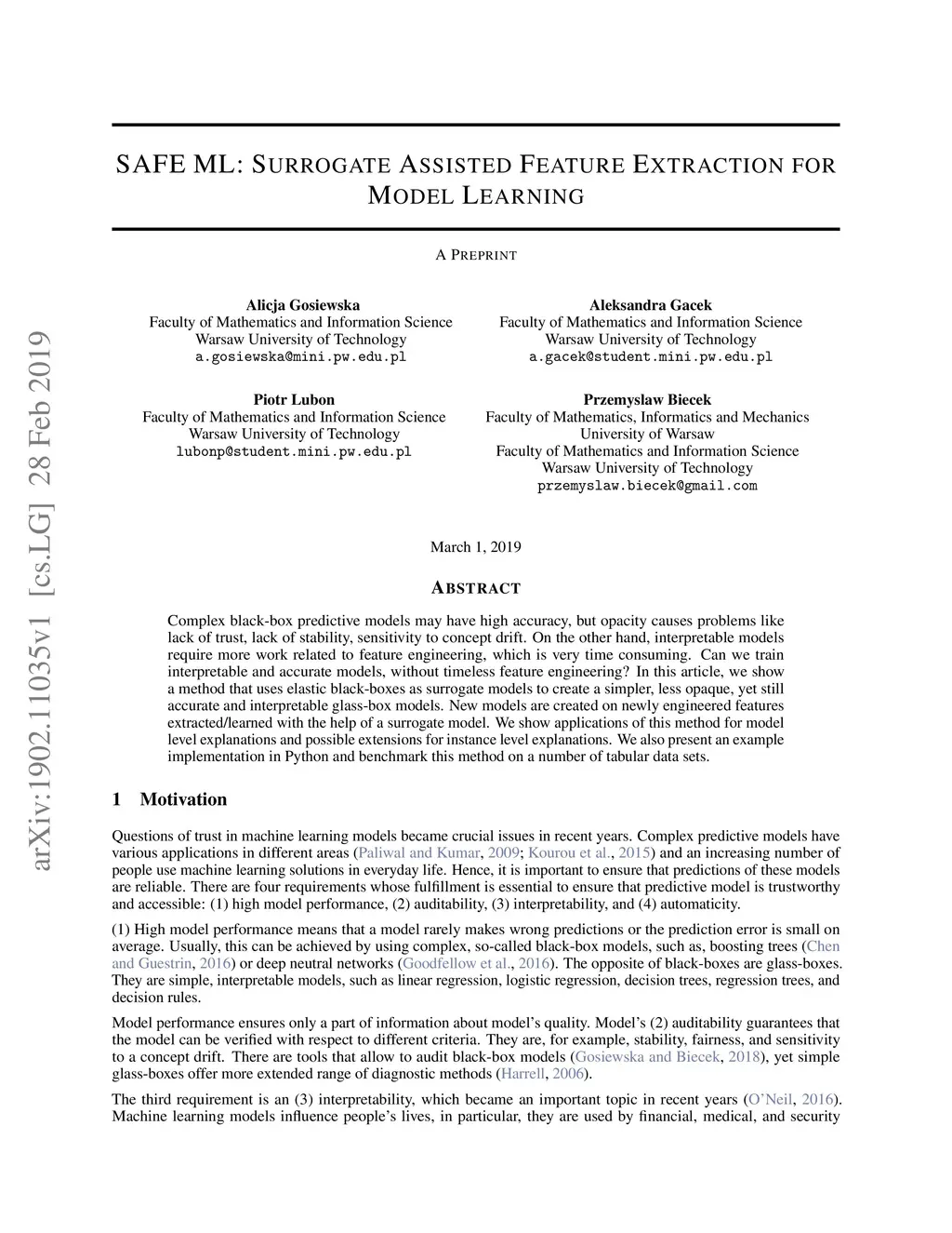 SAFE ML: Surrogate Assisted Feature Extraction for Model Learning
