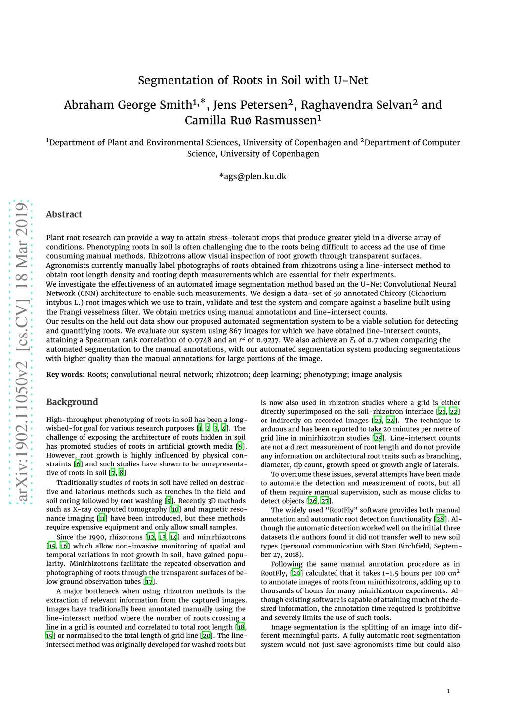 Segmentation of Roots in Soil with U-Net