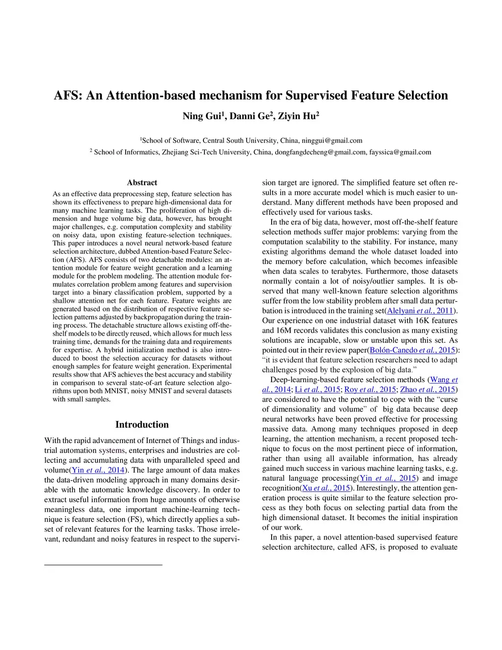 AFS: An Attention-based mechanism for Supervised Feature Selection