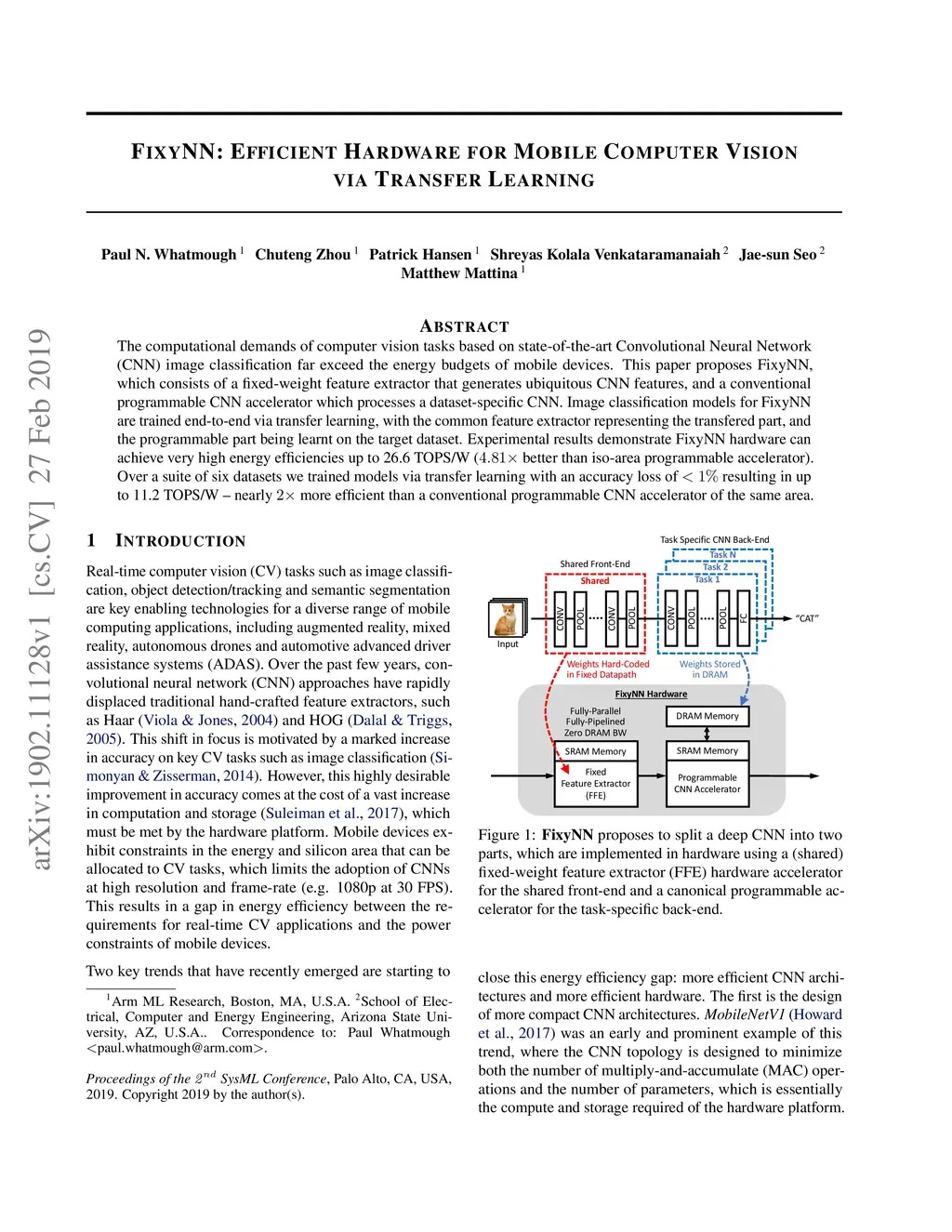 FixyNN: Efficient Hardware for Mobile Computer Vision via Transfer