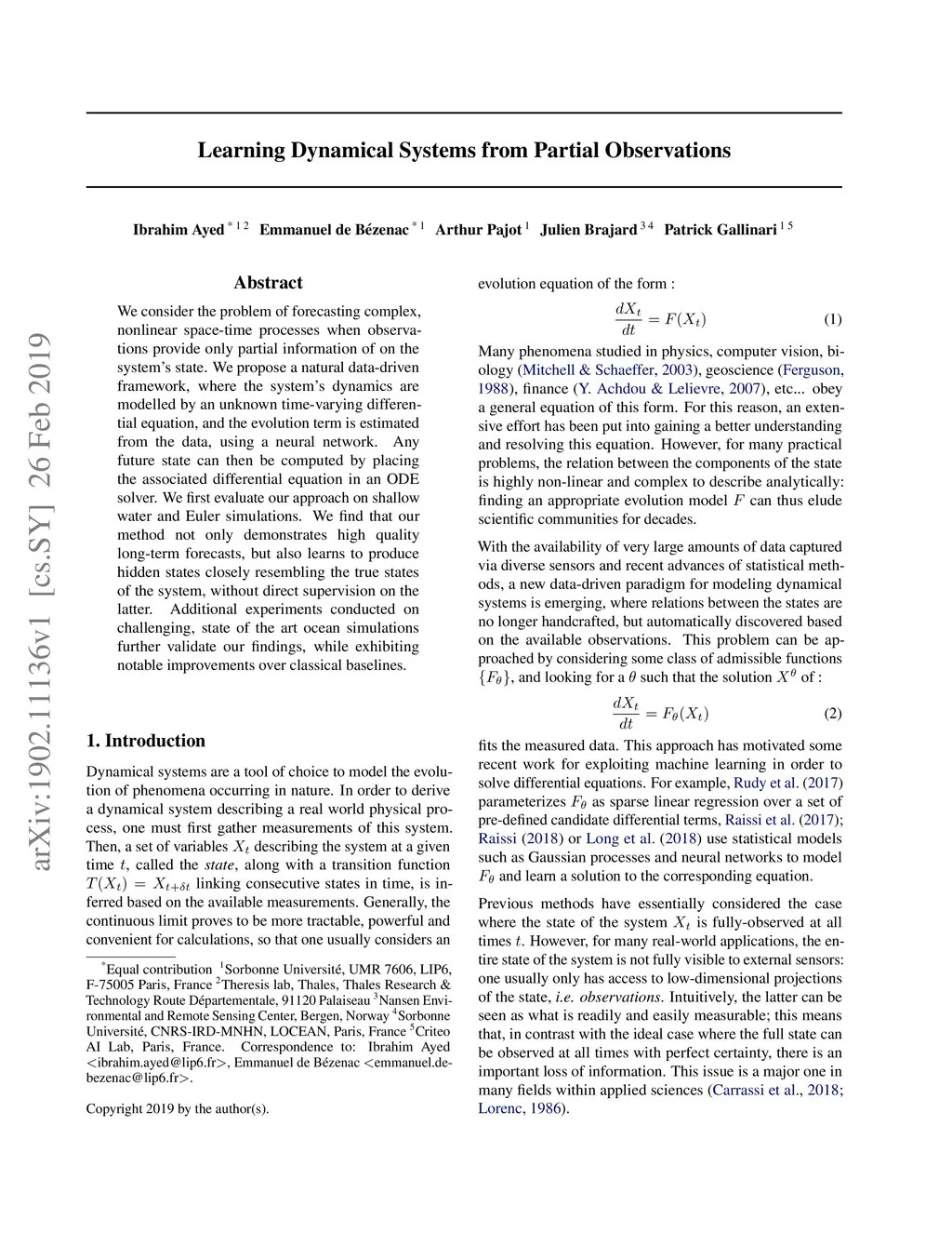 Learning Dynamical Systems from Partial Observations