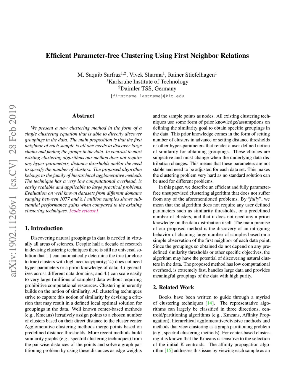 Efficient Parameter-free Clustering Using First Neighbor Relations