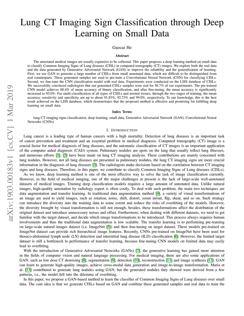 Lung CT Imaging Sign Classification through Deep Learning on Small Data