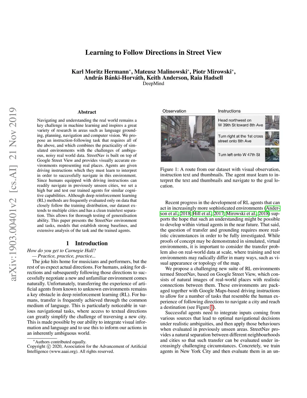 Navigating and understanding the real world remains a key challenge in machine learning and inspires a great variety of research in areas such as language grounding, planning, navigation and computer vision. We propose an instruction-following task that requires all of the above, and which combines the practicality of simulated environments with the challenges of ambiguous, noisy real world data. StreetNav is built on top of Google Street View and provides visually accurate environments representing real places. Agents are given driving instructions which they must learn to interpret in order to successfully navigate in this environment. Since humans equipped with driving instructions can readily navigate in previously unseen cities, we set a high bar and test our trained agents for similar cognitive capabilities. Although deep reinforcement learning (RL) methods are frequently evaluated only on data that closely follow the training distribution, our dataset extends to multiple cities and has a clean train/test separation. This allows for thorough testing of generalisation ability. This paper presents the StreetNav environment and tasks, models that establish strong baselines, and extensive analysis of the task and the trained agents.