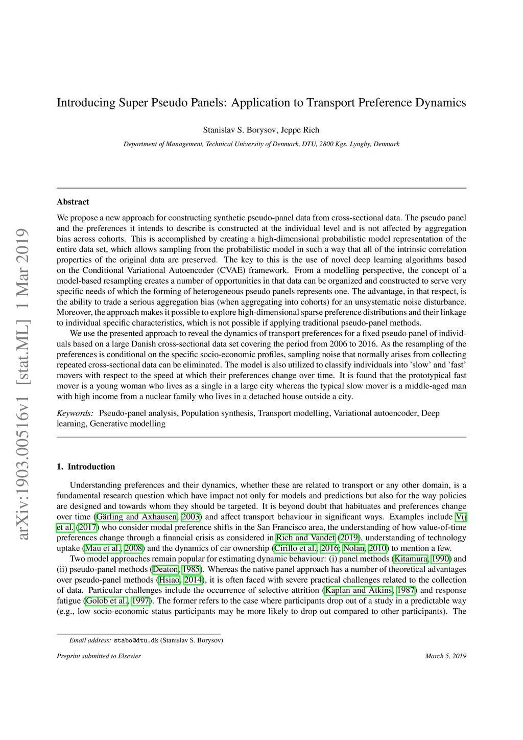 We propose a new approach for constructing synthetic pseudo-panel data from cross-sectional data. The pseudo panel and the preferences it intends to describe is constructed at the individual level and is not affected by aggregation bias across cohorts. This is accomplished by creating a high-dimensional probabilistic model representation of the entire data set, which allows sampling from the probabilistic model in such a way that all of the intrinsic correlation properties of the original data are preserved. The key to this is the use of deep learning algorithms based on the Conditional Variational Autoencoder (CVAE) framework. From a modelling perspective, the concept of a model-based resampling creates a number of opportunities in that data can be organized and constructed to serve very specific needs of which the forming of heterogeneous pseudo panels represents one. The advantage, in that respect, is the ability to trade a serious aggregation bias (when aggregating into cohorts) for an unsystematic noise disturbance. Moreover, the approach makes it possible to explore high-dimensional sparse preference distributions and their linkage to individual specific characteristics, which is not possible if applying traditional pseudo-panel methods. We use the presented approach to reveal the dynamics of transport preferences for a fixed pseudo panel of individuals based on a large Danish cross-sectional data set covering the period from 2006 to 2016. The model is also utilized to classify individuals into 'slow' and 'fast' movers with respect to the speed at which their preferences change over time. It is found that the prototypical fast mover is a young woman who lives as a single in a large city whereas the typical slow mover is a middle-aged man with high income from a nuclear family who lives in a detached house outside a city.