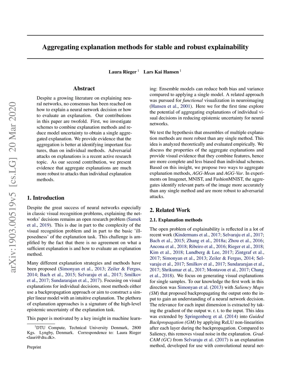 Despite a growing literature on explaining neural networks, no consensus has been reached on how to explain a neural network decision or how to evaluate an explanation. Our contributions in this paper are twofold. First, we investigate schemes to combine explanation methods and reduce model uncertainty to obtain a single aggregated explanation. We provide evidence that the aggregation is better at identifying important features, than on individual methods. Adversarial attacks on explanations is a recent active research topic. As our second contribution, we present evidence that aggregate explanations are much more robust to attacks than individual explanation methods.