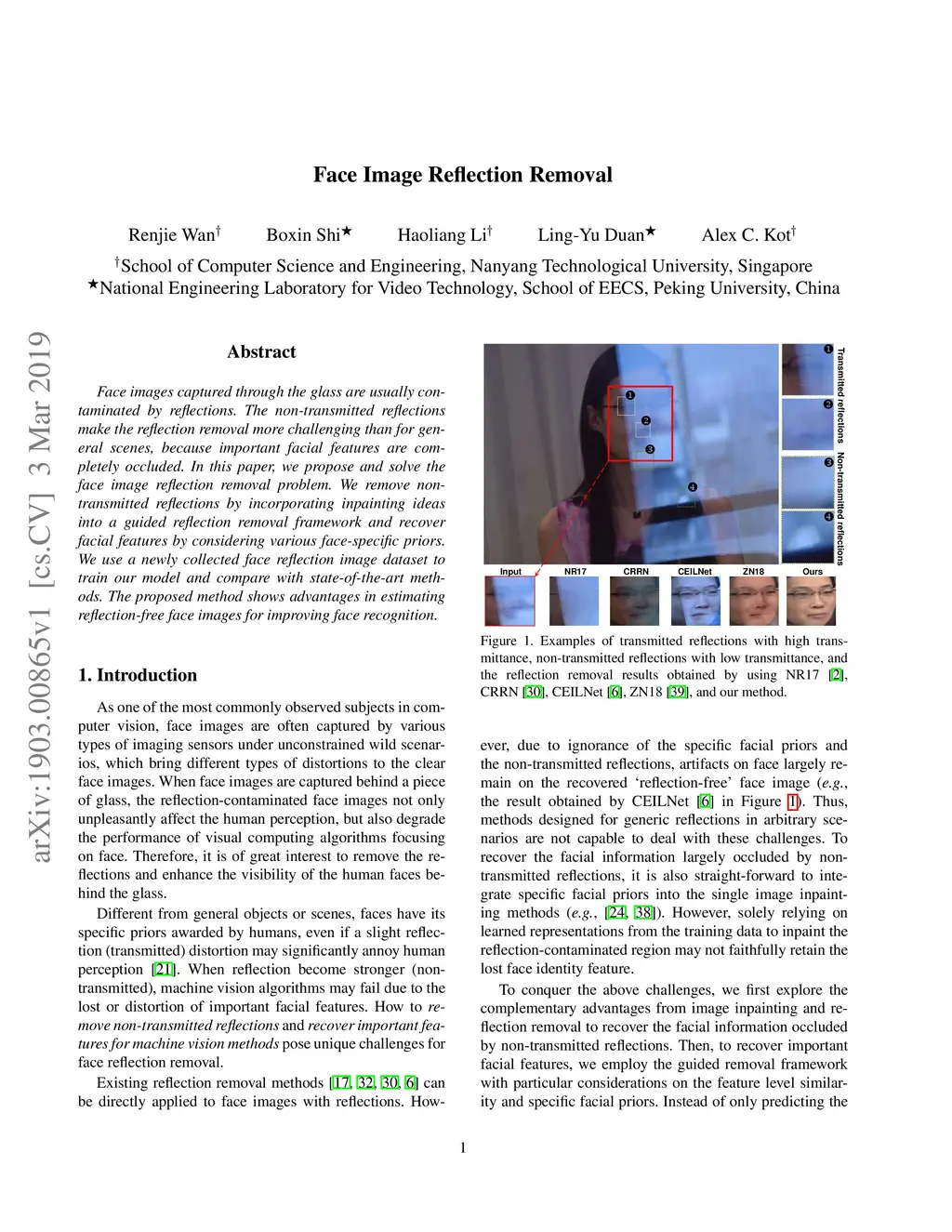 Face Image Reflection Removal