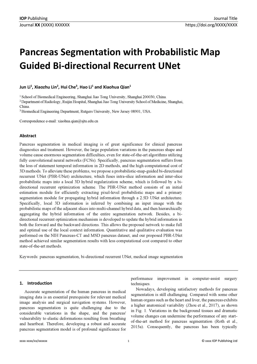 Pancreas segmentation with probabilistic map guided bi-directional recurrent UNet