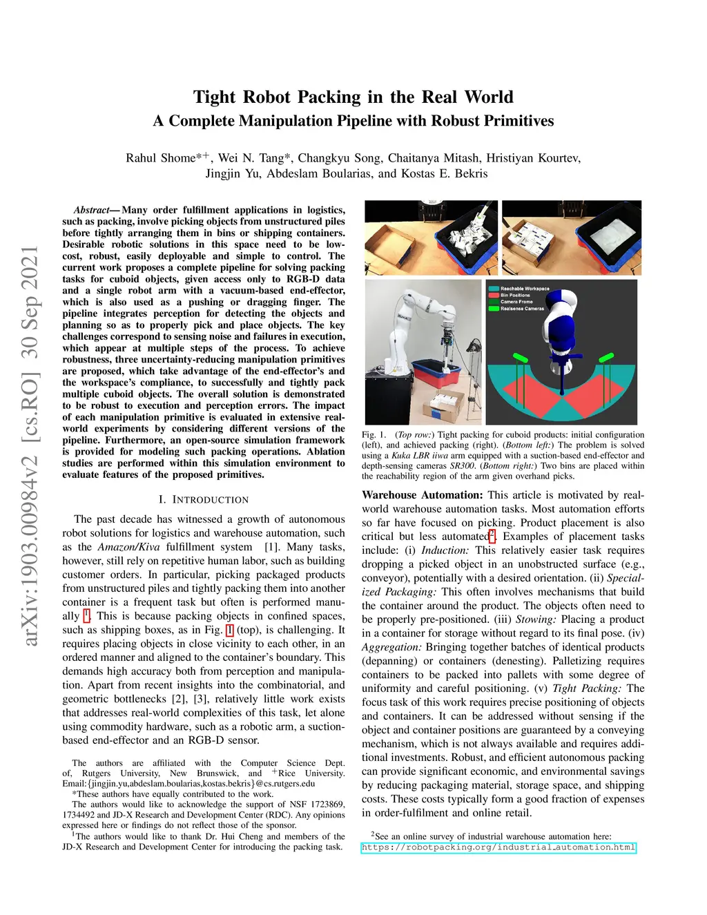 Tight Robot Packing in the Real World: A Complete Manipulation Pipeline
