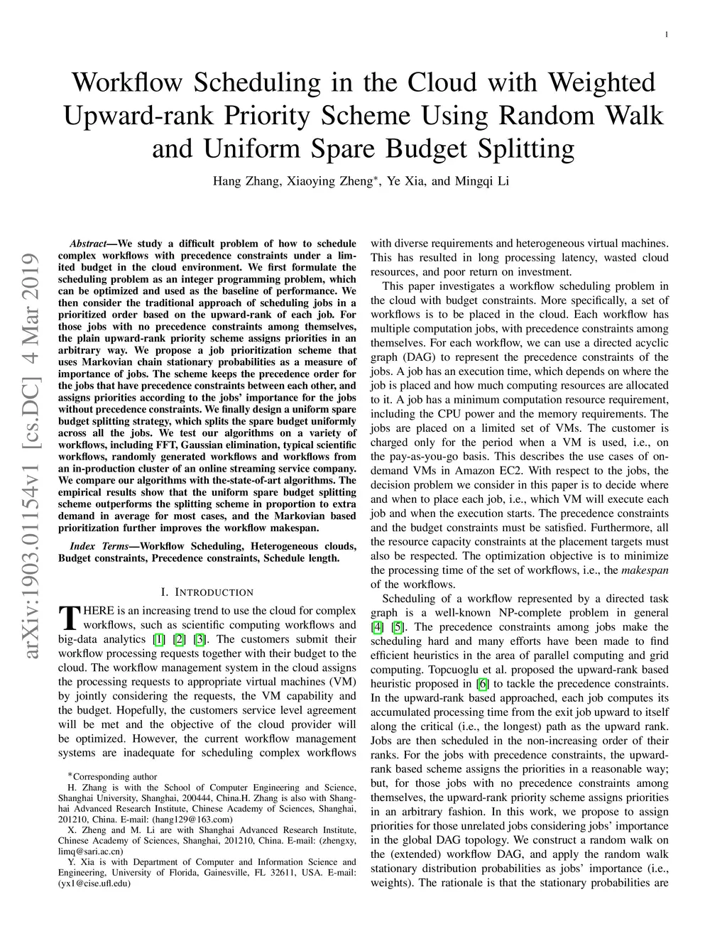 Workflow Scheduling in the Cloud with Weighted Upward-rank Priority