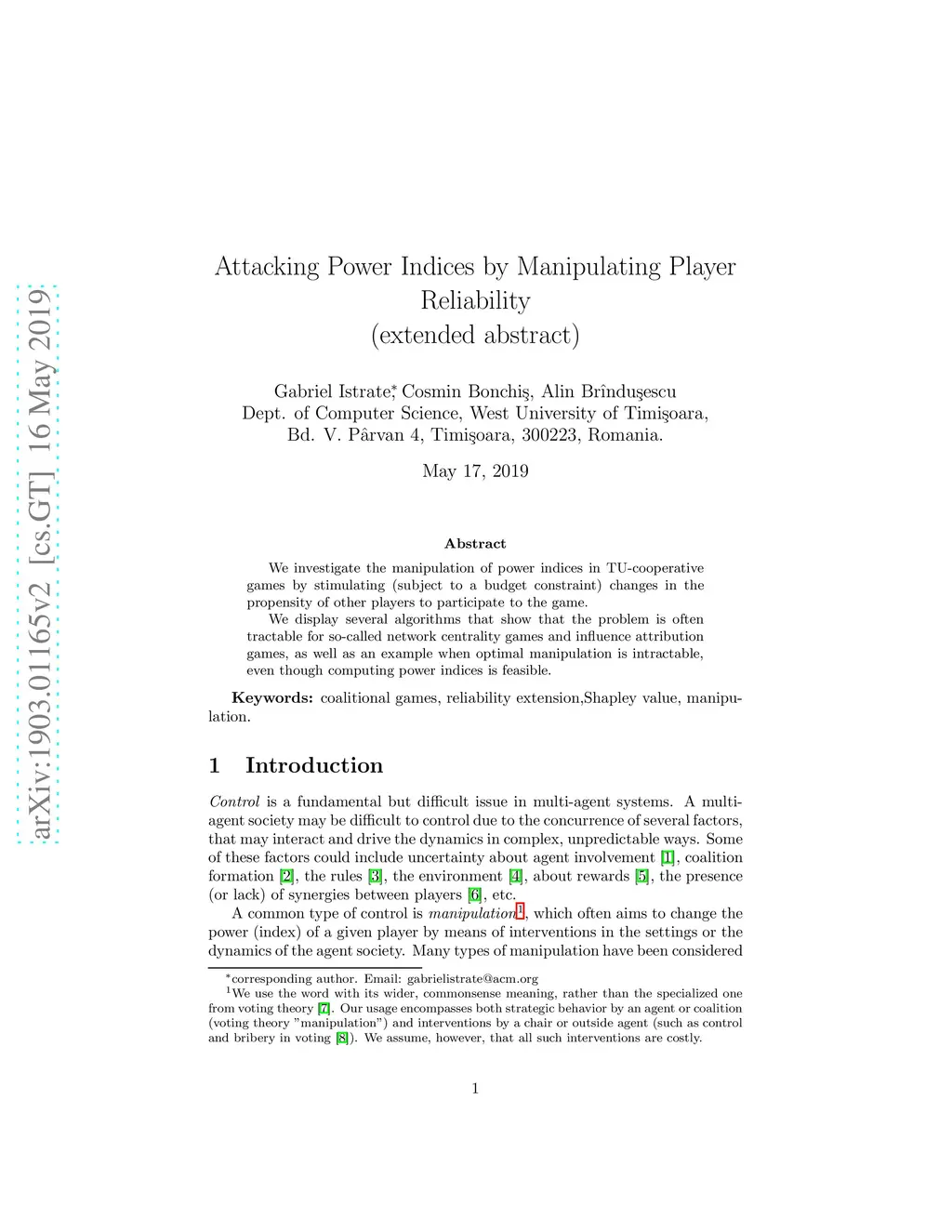Adaptive Agents and Multi-Agent Systems (AAMAS), 2019