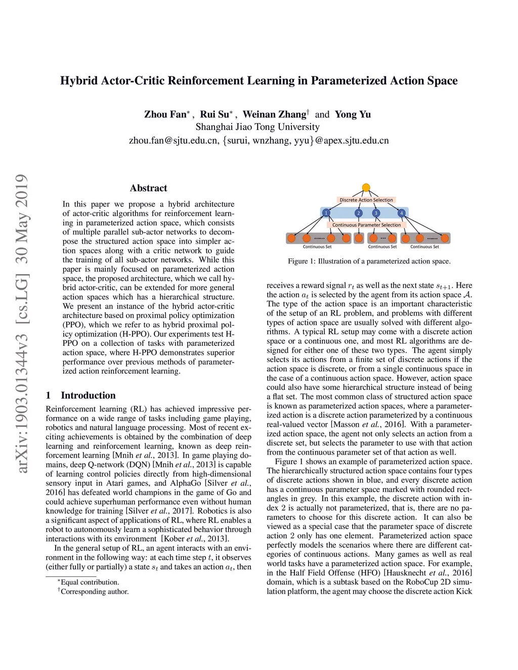 Hybrid Actor-Critic Reinforcement Learning in Parameterized Action Space