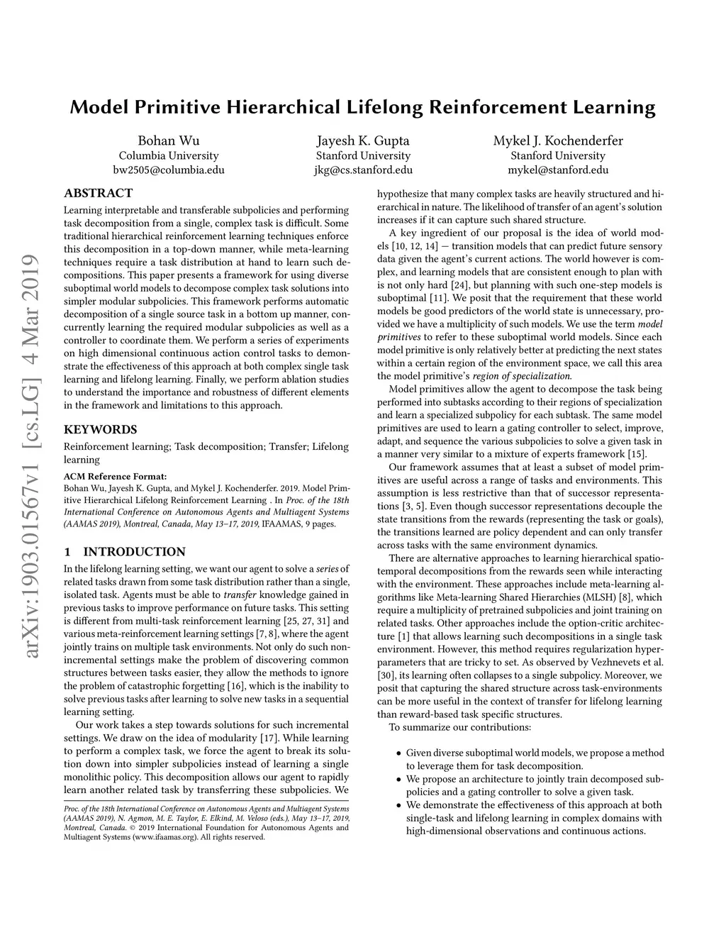 Model Primitive Hierarchical Lifelong Reinforcement Learning