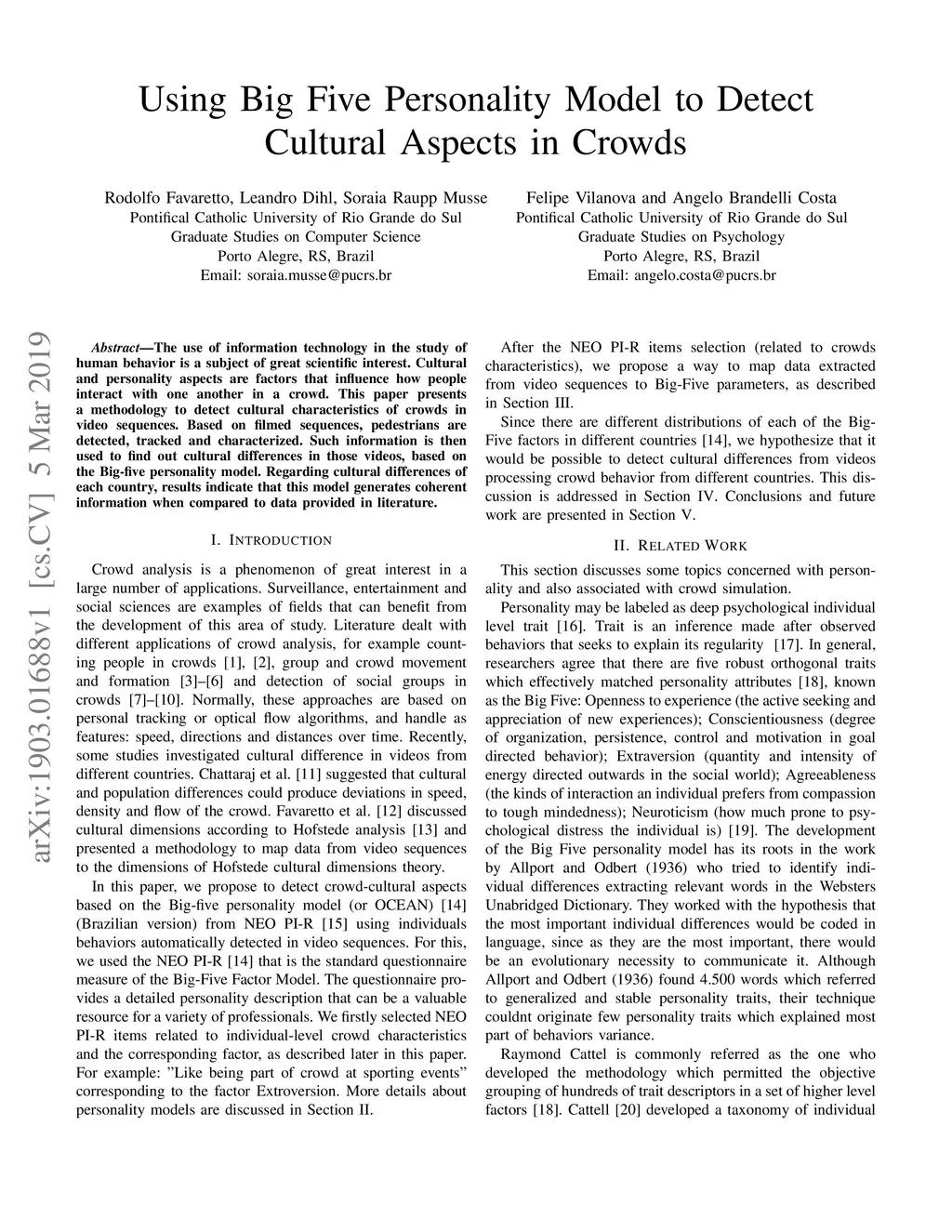 Using Big Five Personality Model to Detect Cultural Aspects in Crowds