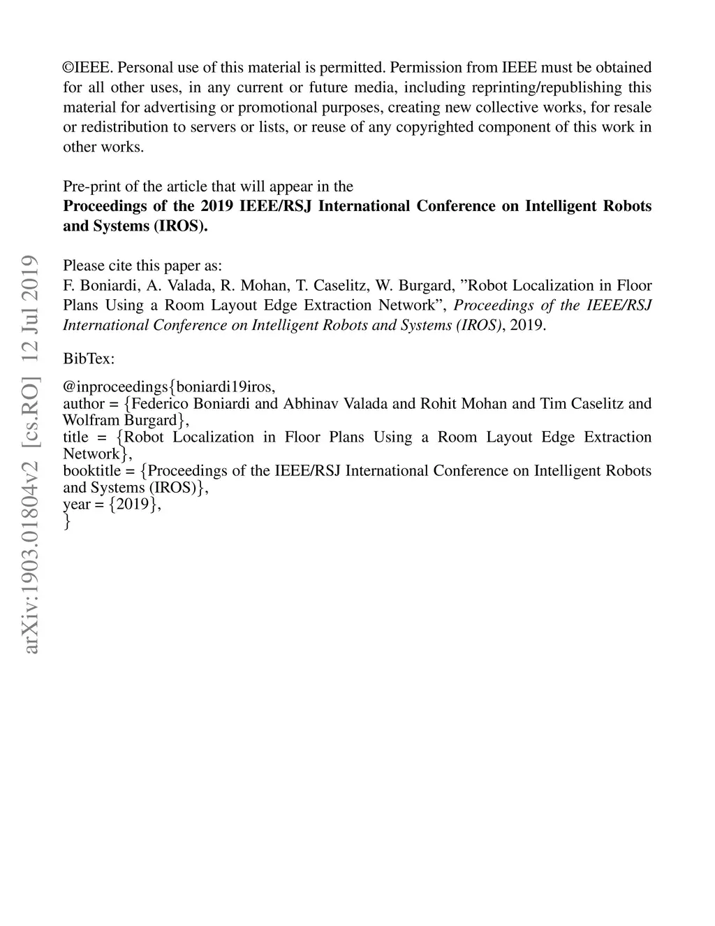 Robot Localization in Floor Plans Using a Room Layout Edge Extraction