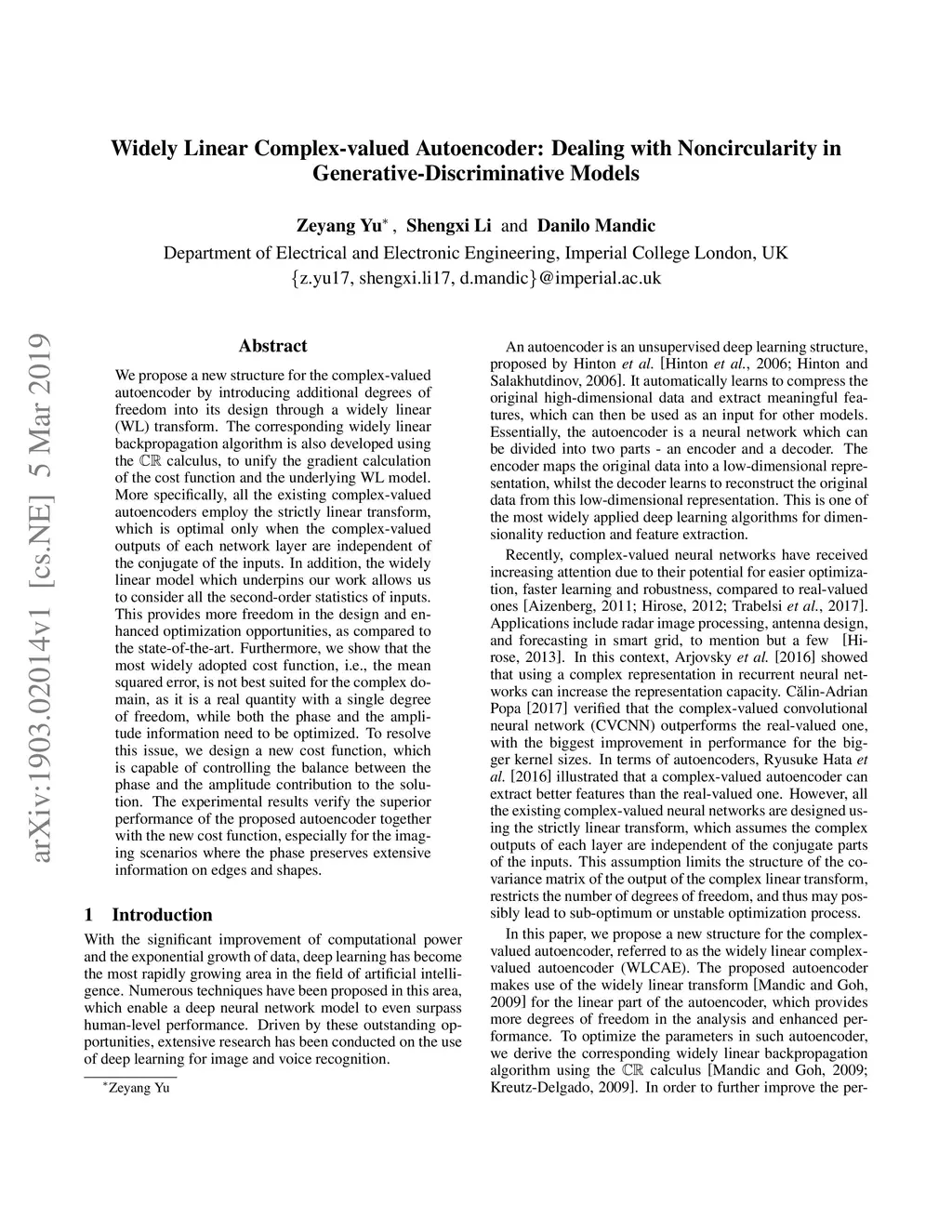 Widely Linear Complex-valued Autoencoder: Dealing with Noncircularity in