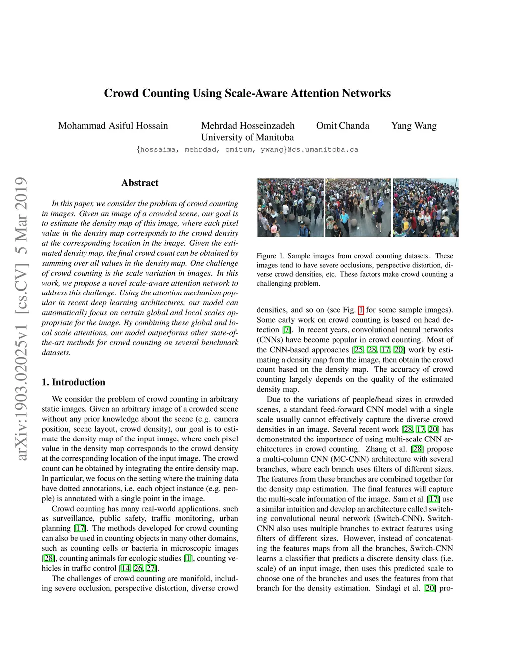 Crowd Counting Using Scale-Aware Attention Networks