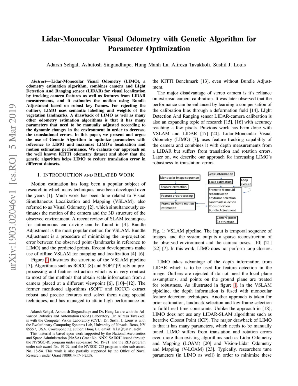 Lidar-Monocular Visual Odometry with Genetic Algorithm for Parameter