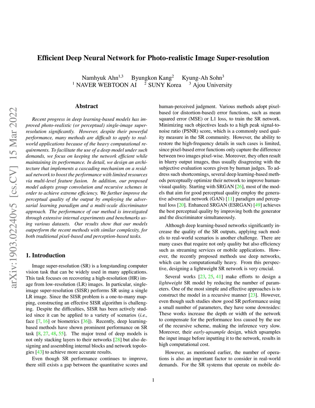 Efficient Deep Neural Network for Photo-realistic Image Super-Resolution